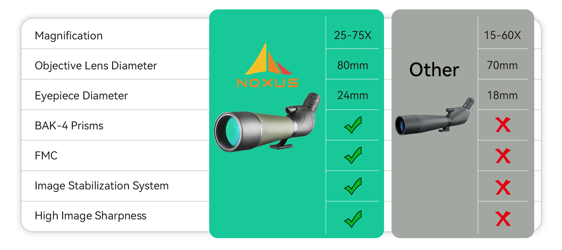 This led to Noxus. The brand promises to use high-quality optics and stable engineering to deliver bright, sharp, and comfortable long-distance viewing. Noxus’s mission: To help everyone explore nature with clarity, ease, and precision.